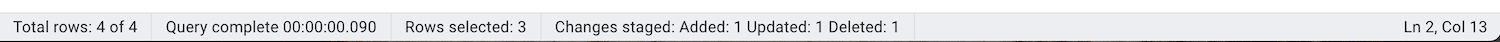Changes staged: This information shows the number of rows added, deleted, and updated.